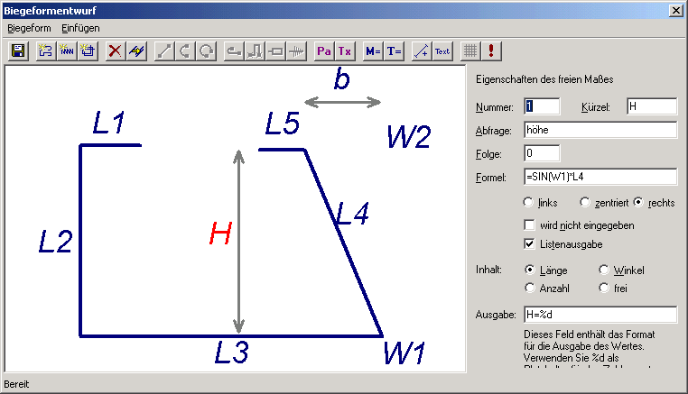 Das Grundmodul wird mit einem kompletten Biegeformen-Stamm ausgeliefert, welcher jederzeit vom Benutzer selbst neu erstellt werden kann.
